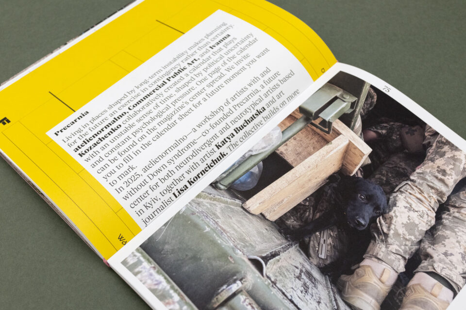 Mit vielfältigen Stimmen aus dem Jemen bis zur Ukraine, von Georgien bis Deutschland, richtet die neue Ausgabe von Solomiya seine Aufmerksamkeit auf die Bedingungen der Gegenwart, die die Wege hin zu möglichen Zukünften formen. Texte und künstlerischen Reflexionen von 21 Künstler*innen, Wissenschaftler*innen und Journalist*innen bewegen sich durch die Sackgassen der Kommunikation und begegnen dem Paradox, sich kommende Gegenwarten im andauernden Krieg vorzustellen. Sie schaffen Raum für Zweifel, Widerspruch und die Möglichkeit des Irrtums durch Zeugnisse von Soldat*innen und Ausdrucksformen körperlicher Erfahrungen — von Tänzer*innen, imaginären Schachfiguren, Dopamin-Superhelden, Astronaut*innen und getrockneten Wassermelonen.